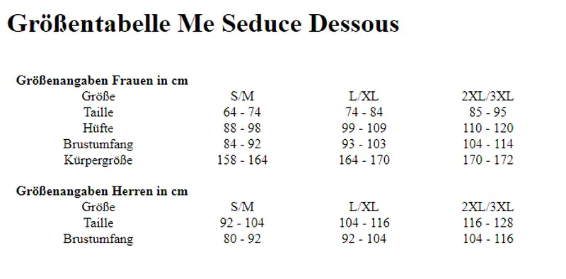 In unserem Shop finden Sie eine erlesene Auswahl der feinsten Dessous- Kreationen von Me Seduce. Entdecken Sie erotische Unterwäsche-Sets, Babydolls und mehr, die nicht nur optisch, sondern auch durch ihre hochwertige Verarbeitung zu überzeugen wissen.