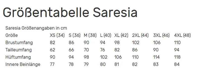 erhältliche Größen : XS bis XL | Größentabelle
